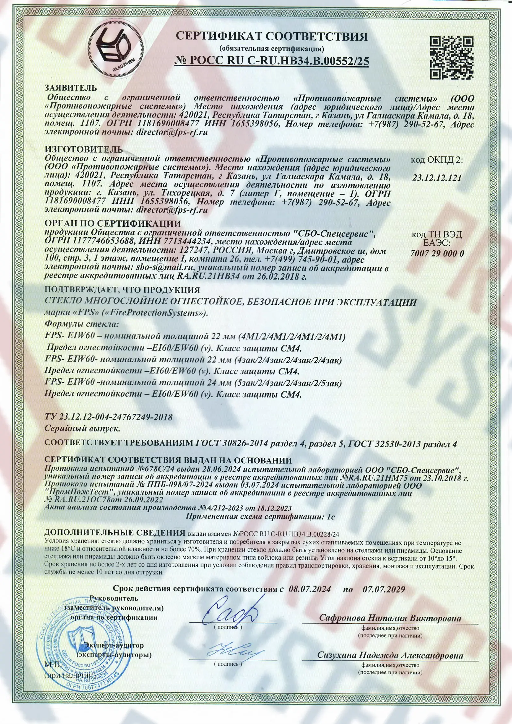 Сертифицировано по ГОСТ Р 53305-2009 и ISO 9001. Легко проходит экспертизу. Противопожарные конструкции: стекло, двери, перегородки, витражи – с гарантией до 5 лет. Компания «Fire Protection Systems» известна своим индивидуальным подходом к каждому клиенту, предлагая оперативную доставку, качественный монтаж и техническое обслуживание. Для заказа можно воспользоваться официальным сайтом, позвонить по номеру телефона 8 800 222 99 40 или отправить письмо на электронную почту office@fps-rf.ru.